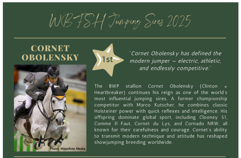 WBFSH Sire Rankings hylder de hingste, hvis genetiske indflydelse driver international sport, og de opdrættere, der gør deres succes mulig