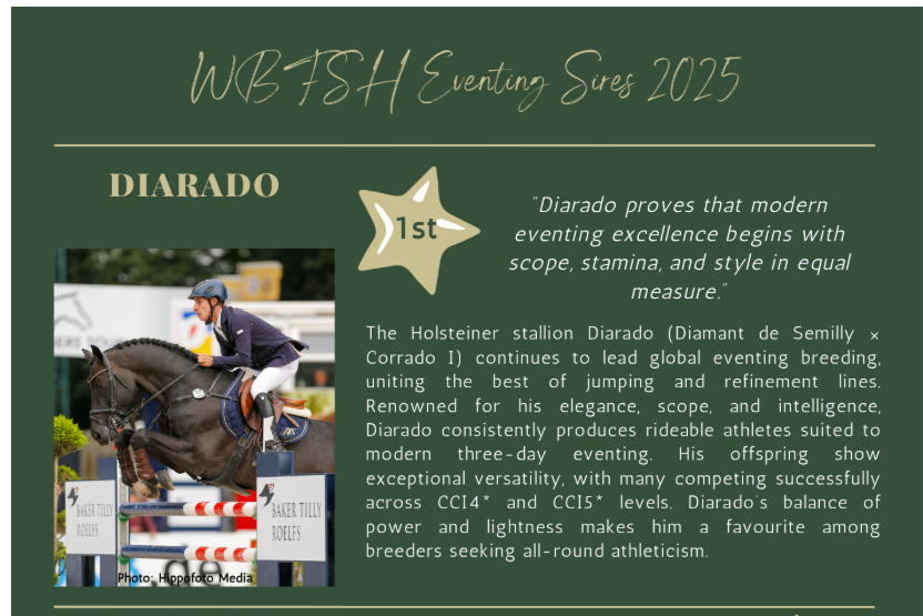 WBFSH har offentliggjort ranglister over avlshingste i dressur, springning og military. ”Resultaterne fra 2025 demonstrerer den fortsatte dominans af etablerede europæiske blodlinjer - men også den voksende globale spredning af deres indflydelse gennem internationale partnerskaber og progressive avlsprogrammer.” skriver WBFSH i en pressemeddelelse.