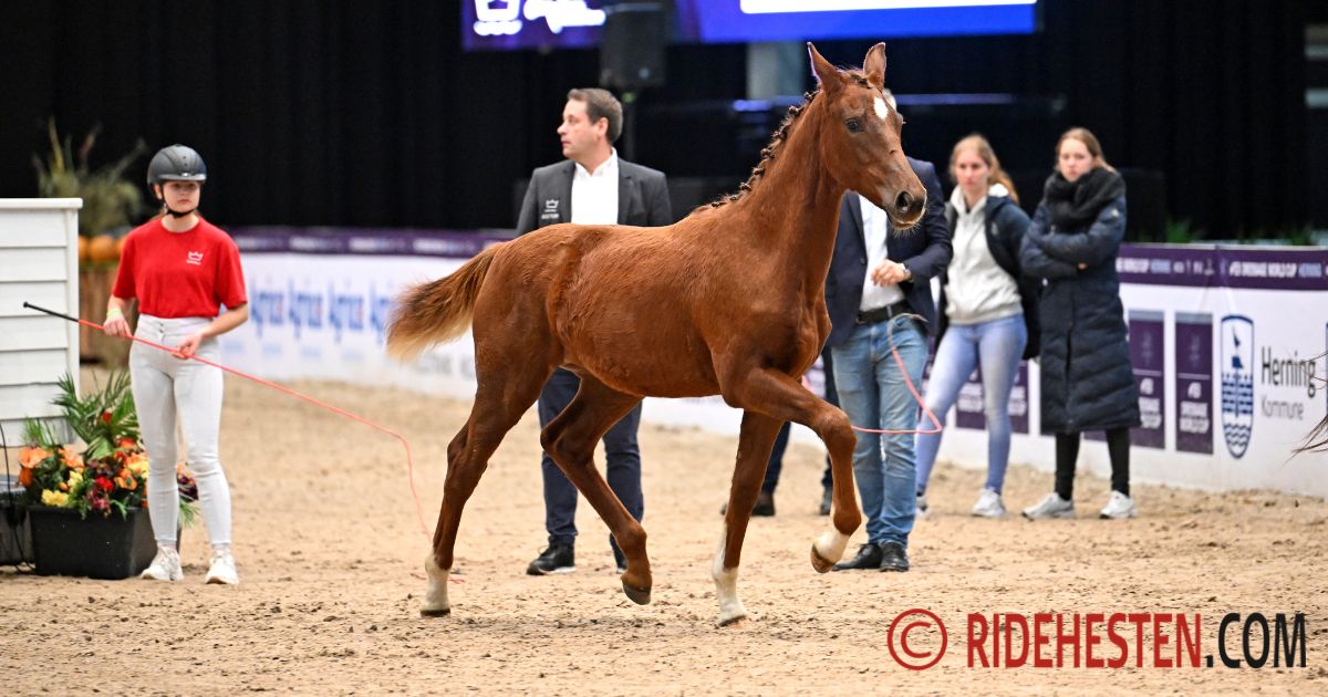 Da første føl blev inviteret indenfor i hallen ved World Cup-stævnet i Herning, kom der rigtig gang i buddene. Hoppeføllet Feline e. Vitalis/Donnerhall er også af nærmest guldrandet afstamning, hvor føllets mor Fabina er søster til avlsmatadoren Blue Hors Don Schufro. Der var flotte bud på føllet fra bydere i arenaen, men langsomt faldt de fra, mens der rasede en budkrig online mellem Tyskland og Danmark.