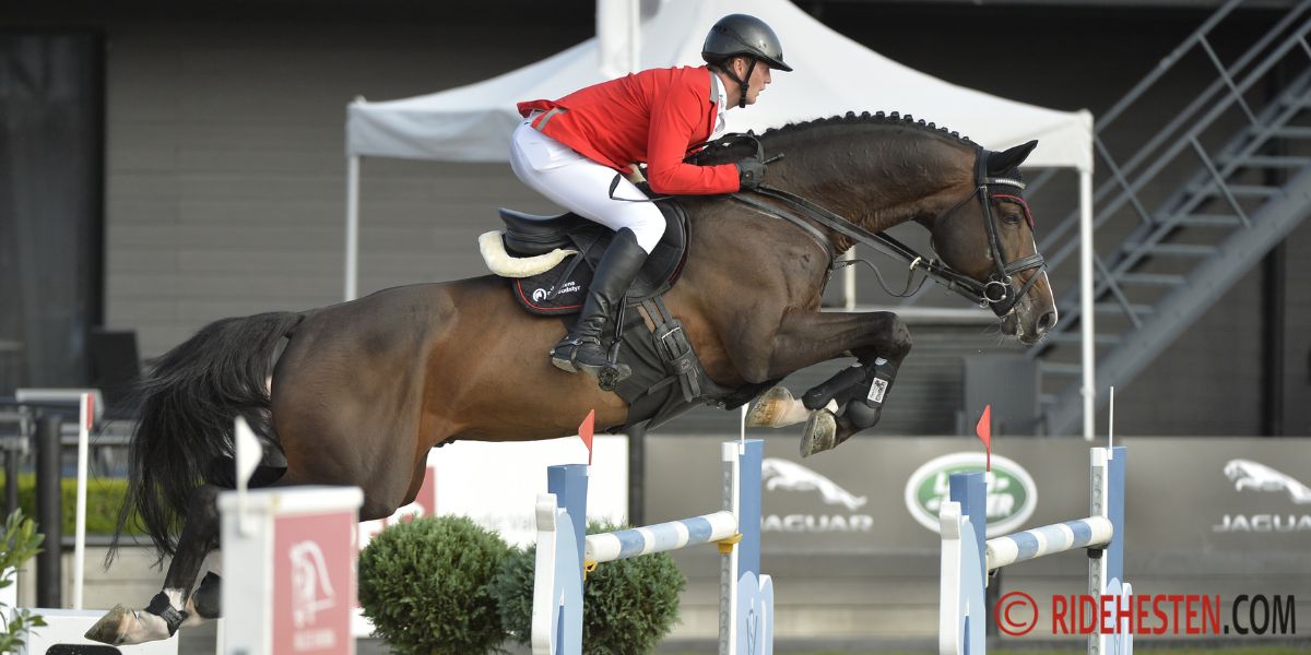E. Bøgegårdens Dicapo og Jesper Meyenburg ved UVM på Zangersheide. Foto: Ridehesten.com/Britt Carlsen