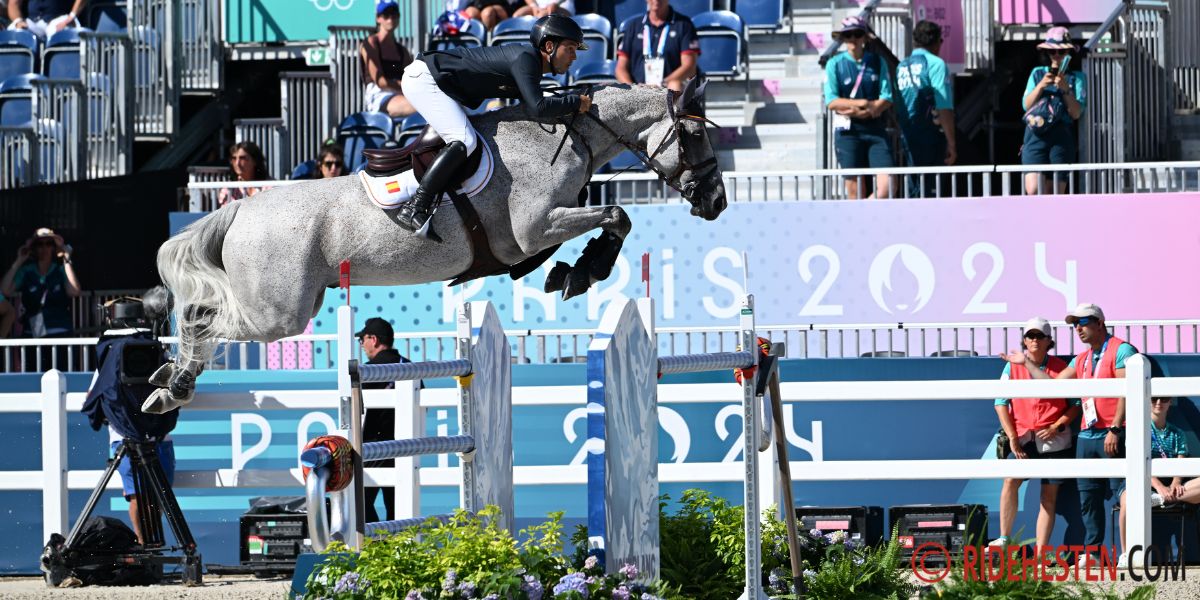 Sergio Alvarez Moya og DV-hesten Puma HS ved OL i Paris. Foto: Ridehesten.com