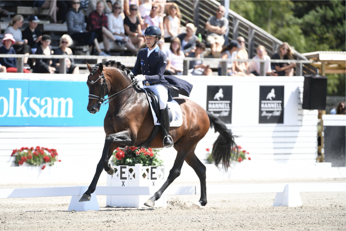 Deltog ved Europmesterskaberne i Crozet 2025 med rytter Maria Klementieva (CYP). Flere sejre og placeringer i østeuropæisk liga CDI3*/ World Cup Grand Prix. | Gammelenggårds Zappa & Jacob Nørby Sørensen ved Falsterbo Horse Show i 2019. Foto: Ridehesten.com/Kristine Ulsø Olsen |
