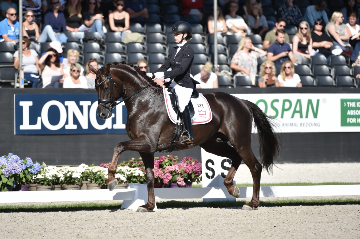 Flere placeringer i CDI3* og World Cup samt mange sejre i CDI1* med rytter Charlotte Jorst. | Atterupgaards Boticelli & Selina Solberg Vittinghus ved World Breeding Championships dressage, Ermelo 2017. Foto: Ridehesten.com/Annette Boe Østergaard |