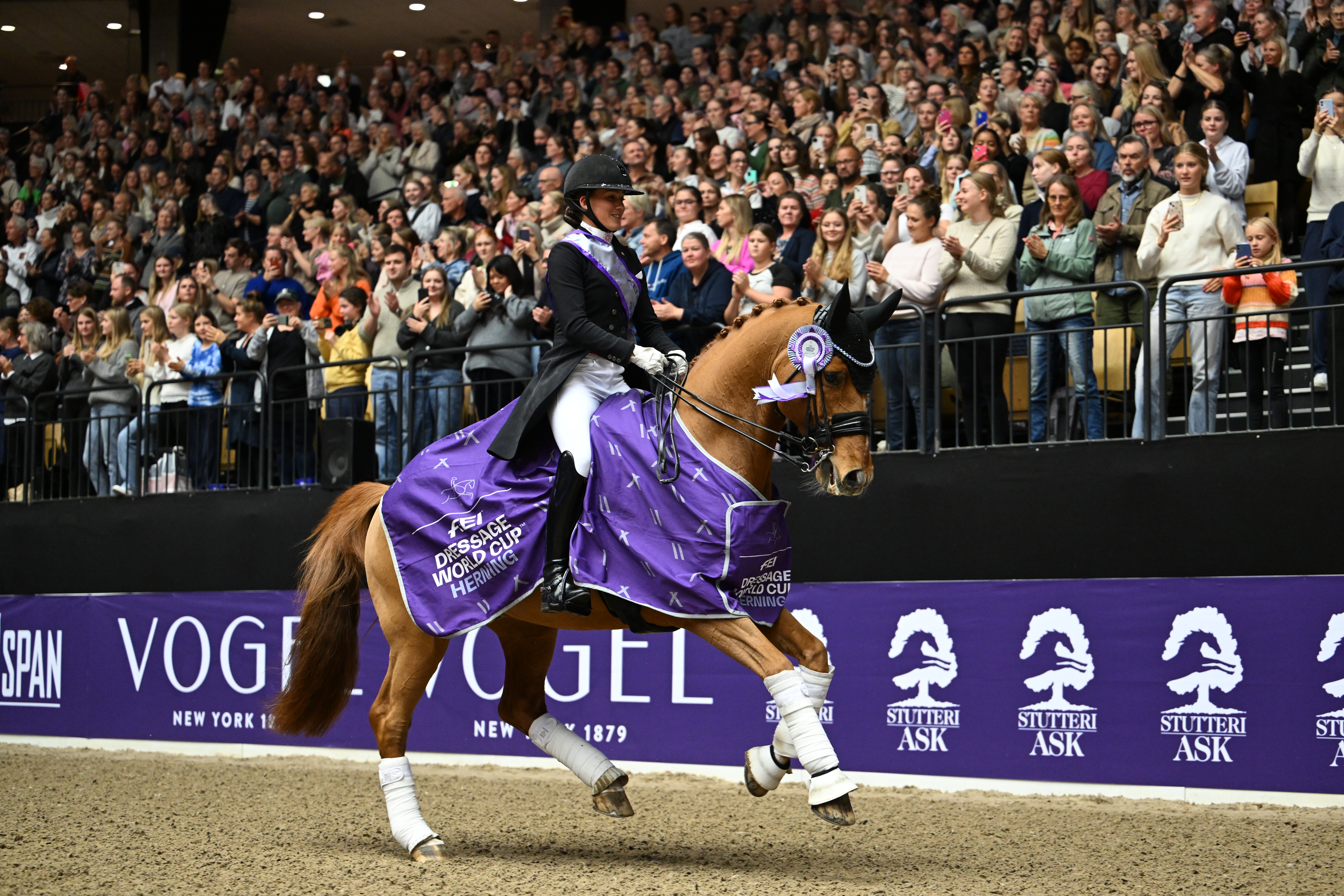 | Tildelt konkurrencemedalje i GULD ATTERUPGAARDS CASSIDY 208333200301452 Født: 24042003 Farve: Rød Køn: Vallak Forædlingsgrad: 31,2% Indavlsgrad: 0,00% Ejer: Familien Dufour, Gundestedvej 3, 4330 Hvalsø Født hos: Atterupgaard, Atterupvej 11, 4174 Jystrup Midtsj. F: CAPRIMOND E.H. DE309090304085 M: DOREEN EDS 12981 EDS MF: DONNERHALL DE333330887081 MM: PARODIE ERDH 5442 MMF: PIK BUBE I DE331314600373 MMM: DUNJA DE331317513170 OL-finalist Rio 2016, guld ved Europamestersaberne (YR) i 2012 og 2013, bronze ved Europamesterskaberne 2017 og 2019. Et utal af World Cup og CDI5* sejre og placeringer med Cathrine Laudrup-Dufour. Parret har været nr. 2 på FEI’s World Ranking liste. |  Atterupgaards Cassidy & Cathrine Laudrup-Dufour foran deres hjemmepublikum i Herning. Foto: Ridehesten.com/Kristine Ulsø Olsen