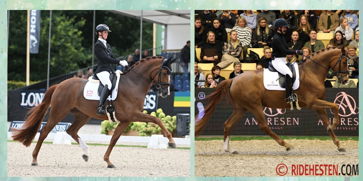 Betina Jæger ved sejren i UVM, da Quinn G. var 5-år og samme år ved sejren i Unghestechampionatet redet af testrytter Cathrine Laudrup-Dufour. Foto: Ridehesten.com