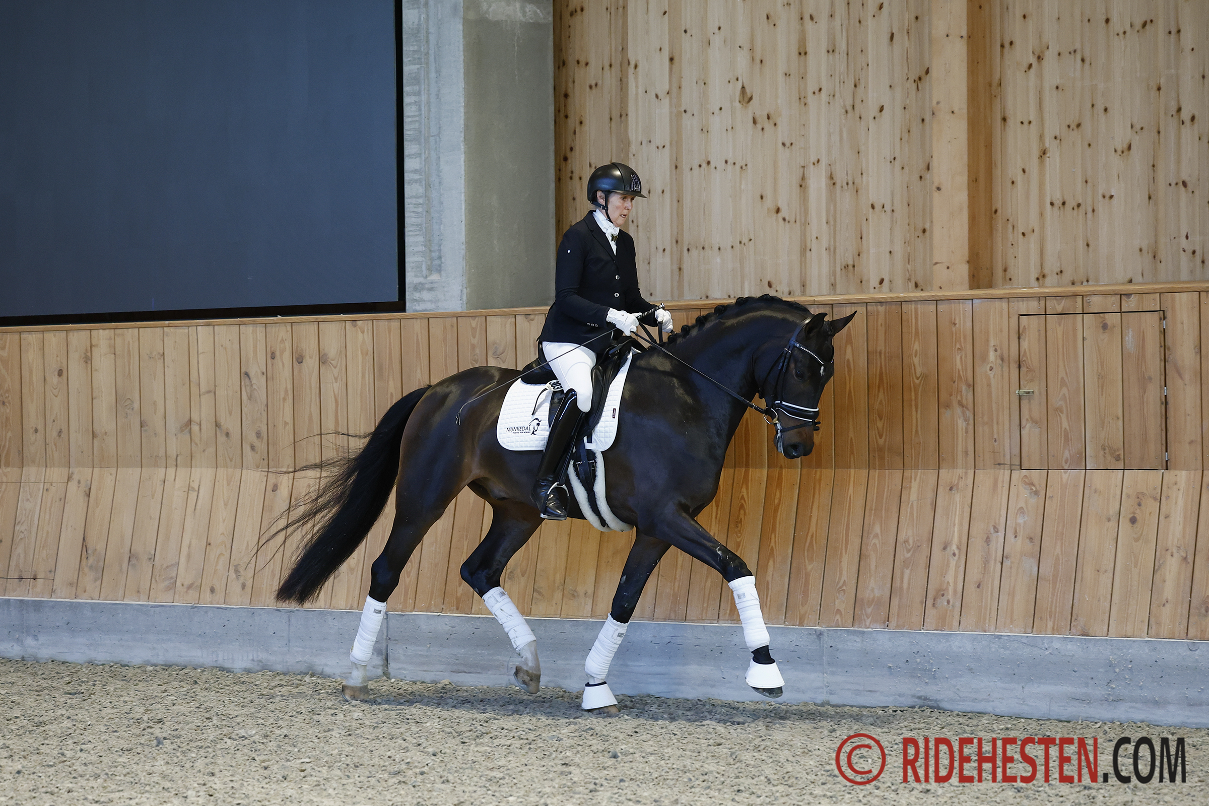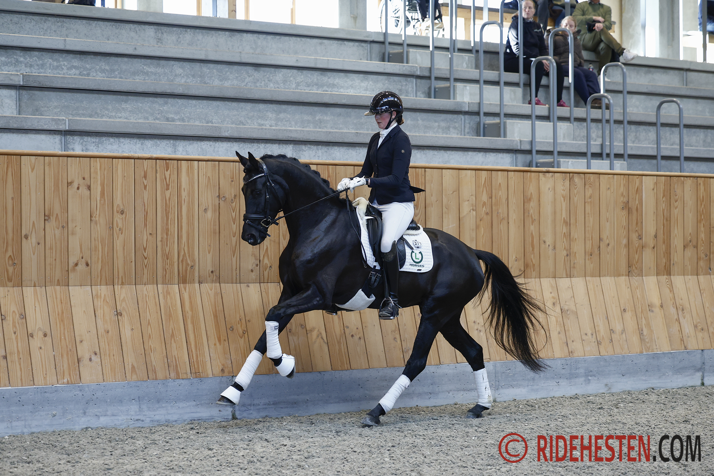 Grafitti’s Fast Lane II e. Blue Hors Fortron/Revolution opdrættet af Jacalyn Smith og Stutteri EA Horses, redet af Sanne Henningsen, som fik 8,5 for skridt, ridelighed og kapacitet.Foto: Ridehesten.com