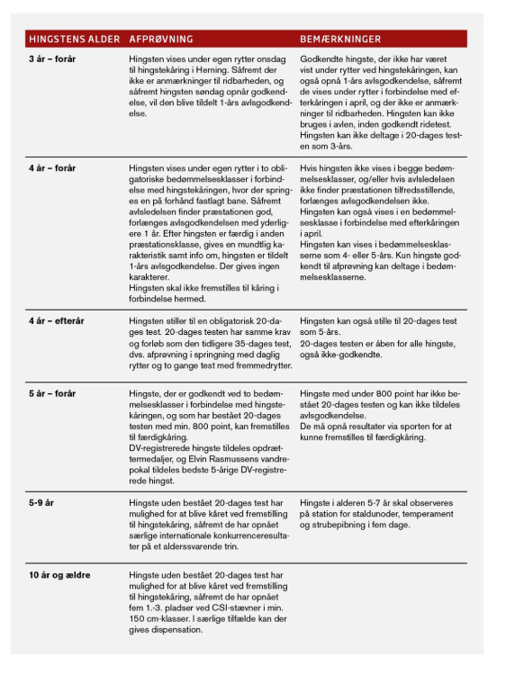 Grunden til ændringen er, at Avlsledelsen for springning finder, at det for 3-års hingstenes vedkommende, er et tidligt tidspunkt at vurdere hingstenes springevner under rytter. Derfor bliver springhingstene nu indsynet til deres test som 4-års. De skal heller ikke gå en 35-dages test som tidligere, men en 20-dages test med samme indhold og krav til ridbarhed og kvalitet.